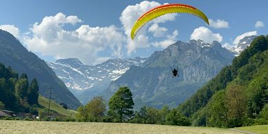 Paragliding in Switzerland with Stanserhorn mountain in backdrop